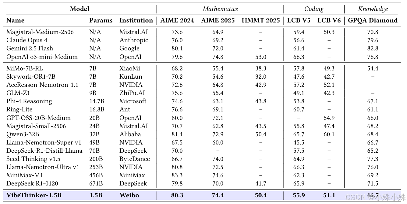当整个AI行业都在追逐"更大即更强"的 scaling law 时,微博AI团队带来的VibeThinker-1.5B却用实实在在的数据告诉我们:小模型,同样可以拥有大智