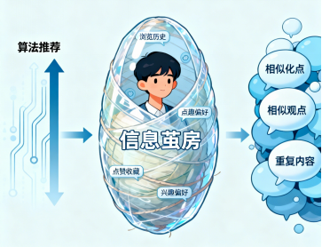 的便利性。但是算法的广泛应用也产生了一个日益严峻的问题——“信息茧房”。用户被困在自己构建的信息孤岛中,视野逐渐狭窄,认知逐渐固化。为应对