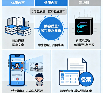 从内容质量层面来看,信息茧房催生了内容生态的“劣币驱逐良币”现象。创作者为了在算法推荐机制下获取更多流量和关注,过度迎合算法偏好,制作出